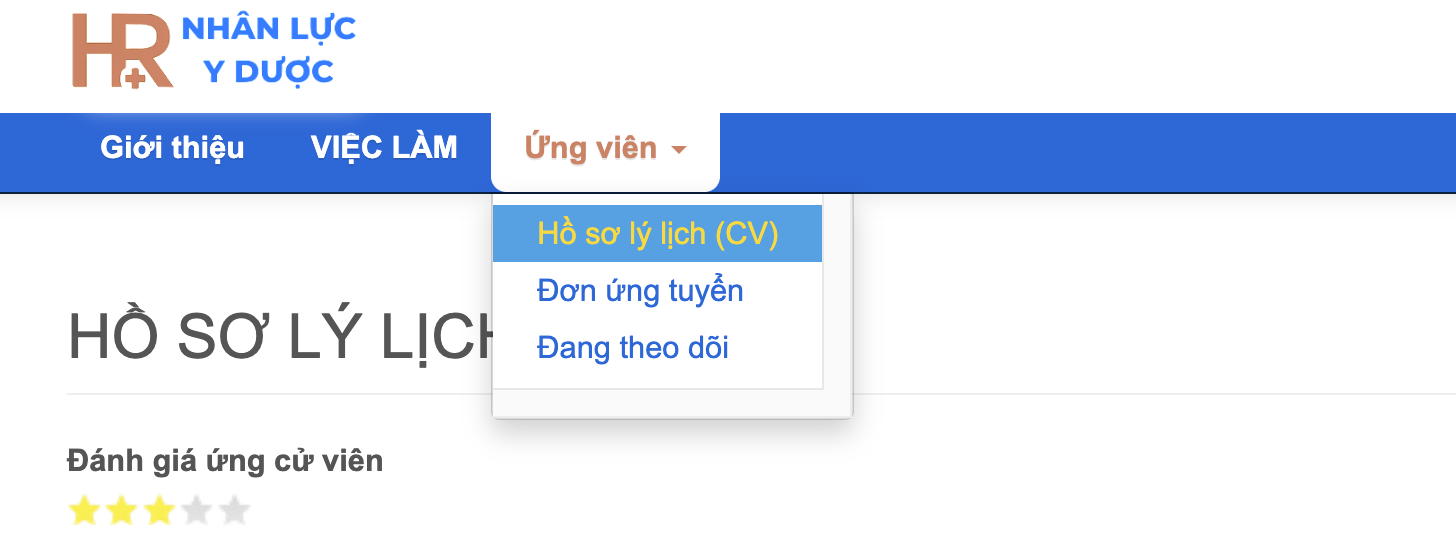 Nếu bạn đăng nhập bằng tài khoản của Ứng viên, bạn sẽ thấy menu như hình.