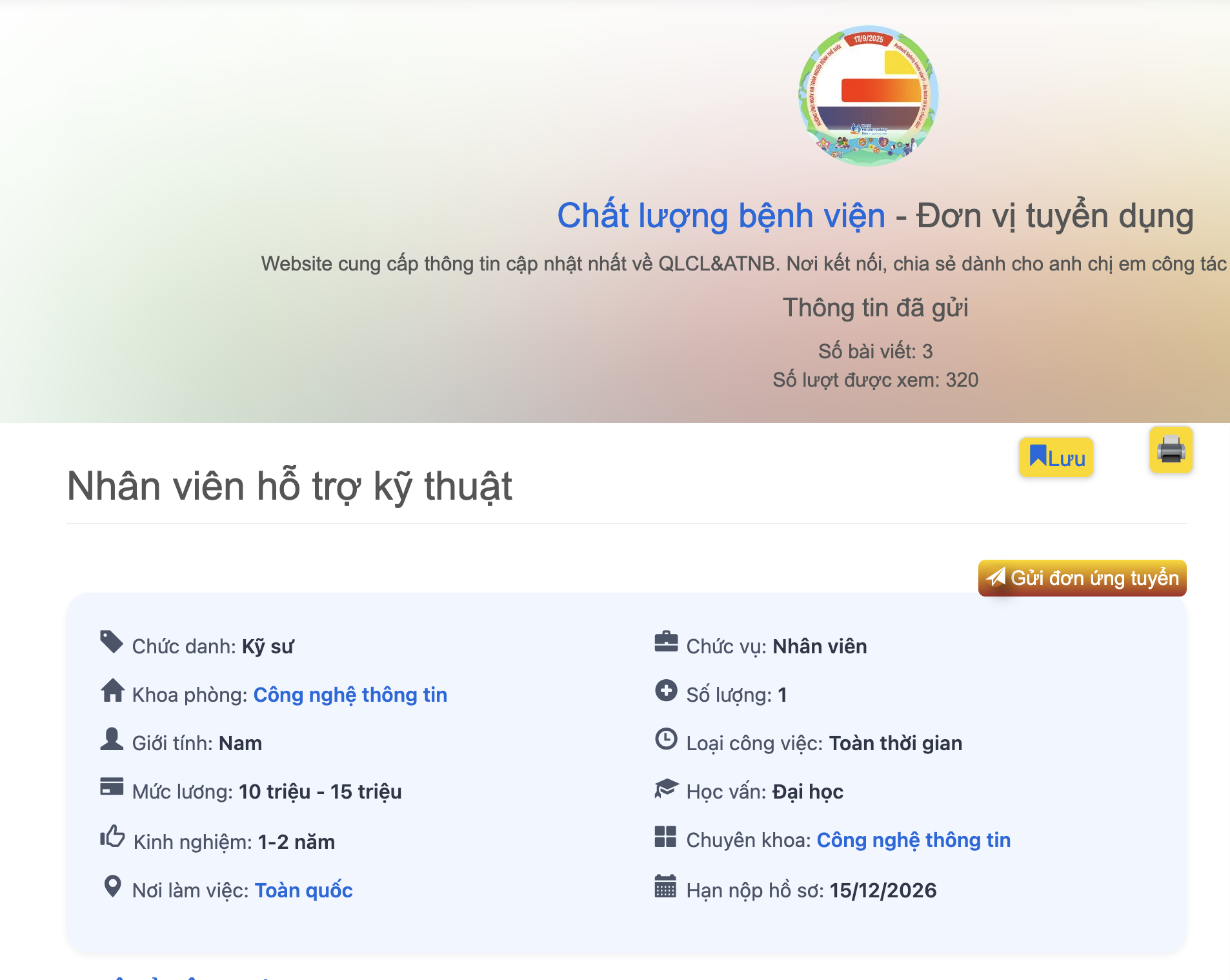 Ở góc trên phải của công việc đăng tuyển, có "Gửi đơn ứng tuyển".