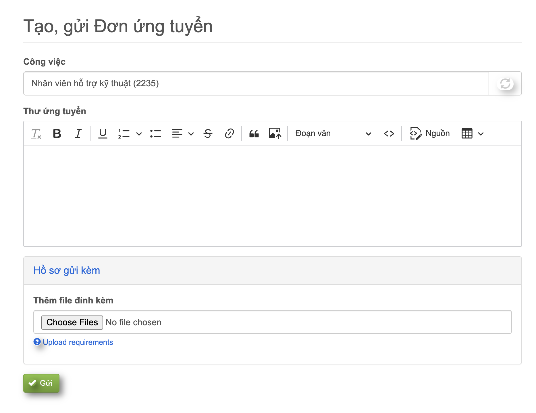 Bạn cũng có thể đính kèm hồ sơ theo yêu cầu của nhà tuyển dụng (nếu cần).