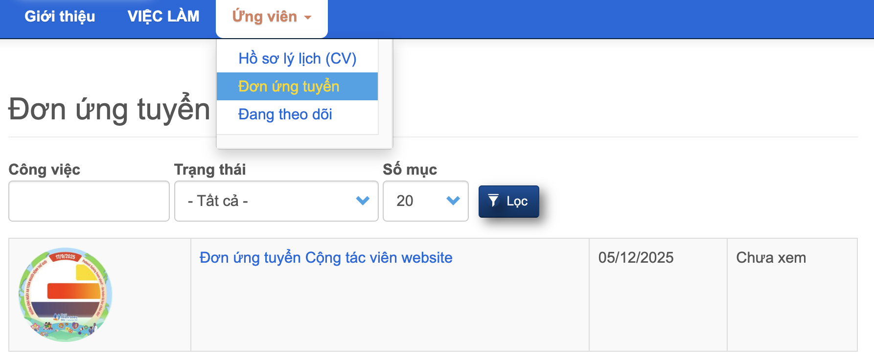 Bạn có thể xem trạng thái của đơn ứng tuyển mình đã gửi.