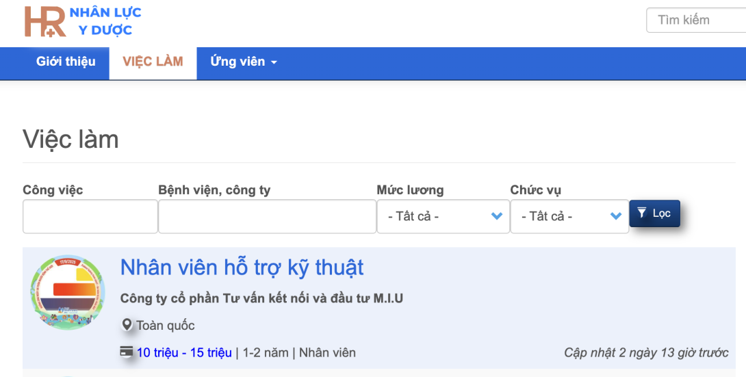 Bạn có thể tìm kiếm Việc làm phù hợp trong trang "VIỆC LÀM"