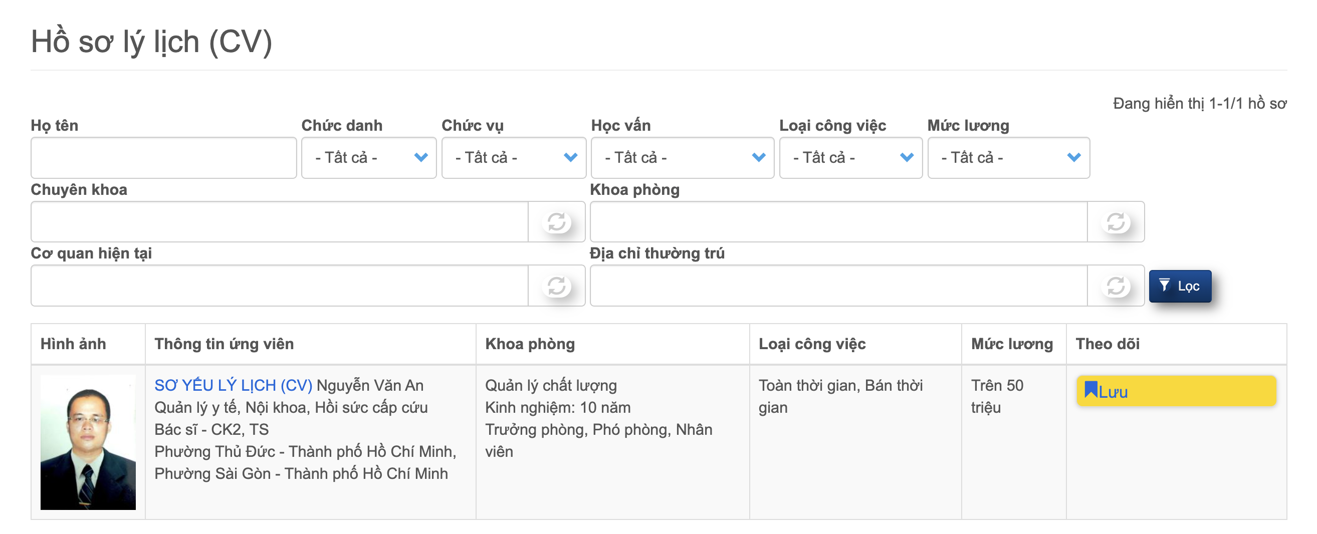 Bạn có thể lọc theo các điều kiện bạn quan tâm để có hồ sơ thích hợp.